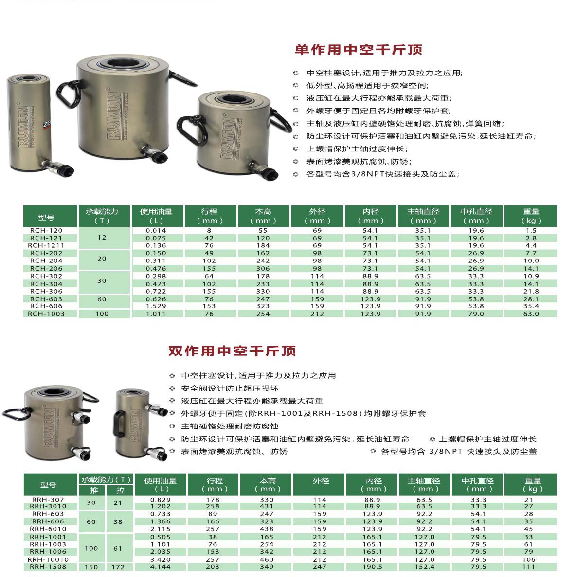 ★若需要更大規(guī)格的液壓千斤頂或定制滿足不同工況的特殊中空液壓千斤頂請與RVMUN銷售工程師或就近分銷商聯(lián)系
