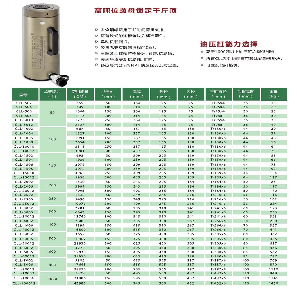 ★若需要更大規(guī)格的液壓千斤頂或定制滿足不同工況的特殊自鎖螺母液壓千斤頂請(qǐng)與RVMUN銷售工程師或就近分銷商聯(lián)系
